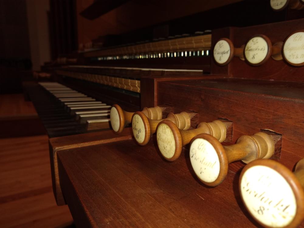 Stop knobs re-engraved (original engravings were mostly disintegrated before restoration)