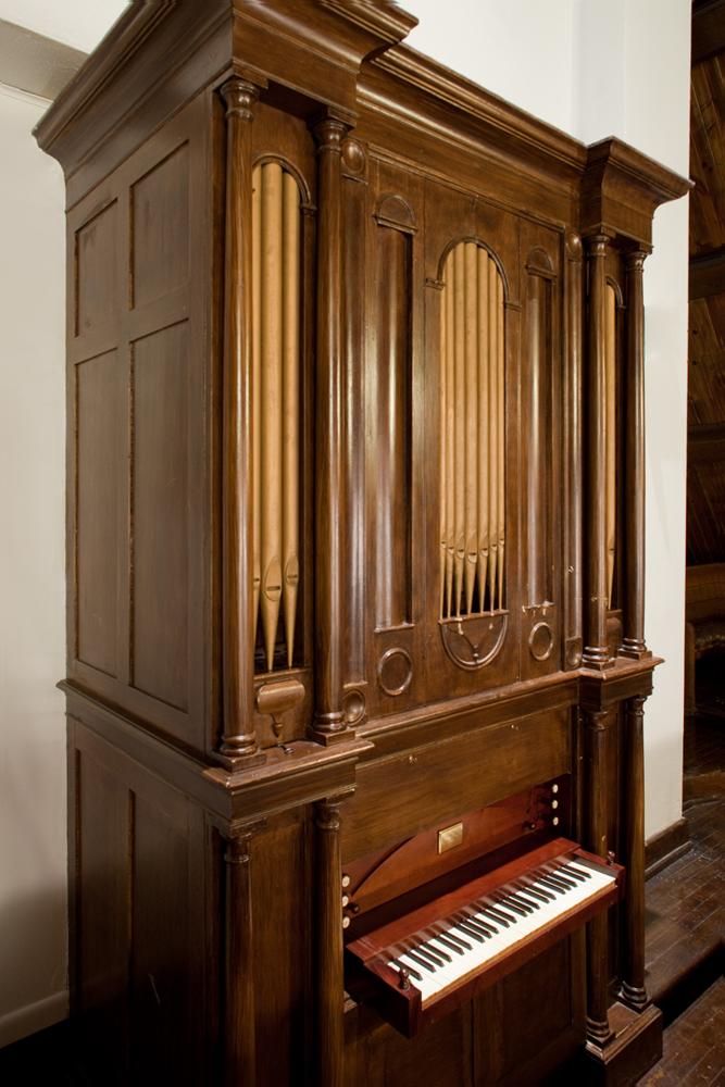 COST $572 for first church building. Moved to 2nd building in 1859, and to present building in 1928. Rebuilt by W. A. Miller. Restored c. 1971 by Phillip Johnson. Manual compass 54 notes. No pedals.