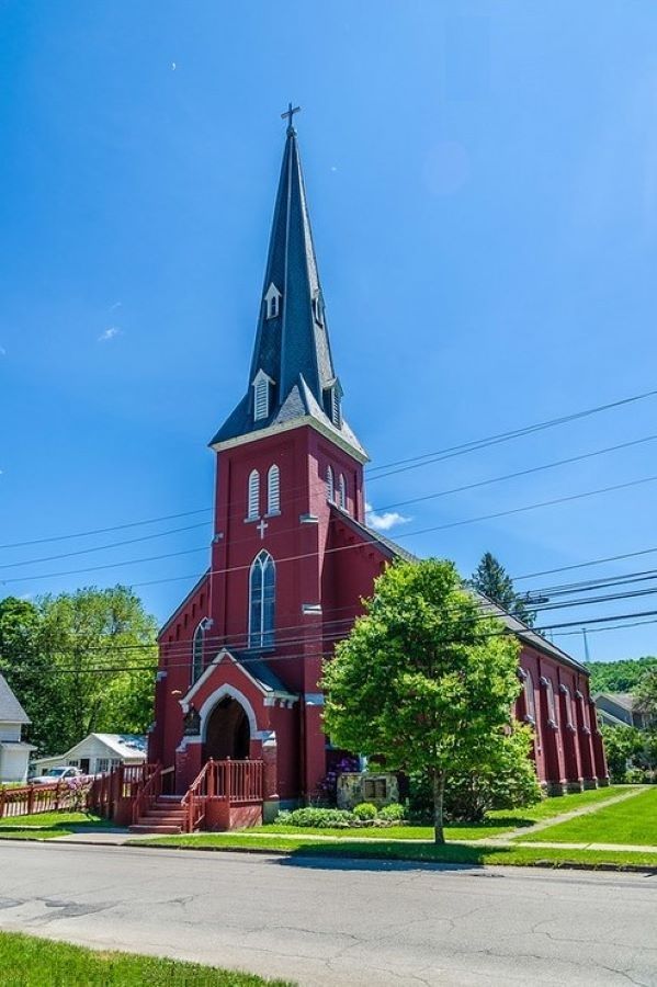 In 2024, this parish no longer has a resident priest, is no longer independently active, nor is the building open at any time other than for 8:00 am Mass on Sunday morning. Blessed Sacrament is now affiliated with the St. Jude/St. Brendan parish of Alfred and Almond, with the priest in charge and rectory located in Almond. It has been 30 years since I have been able to gain entrance to the building, so cannot confirm whether the Garret House artifact is in fact still extant.