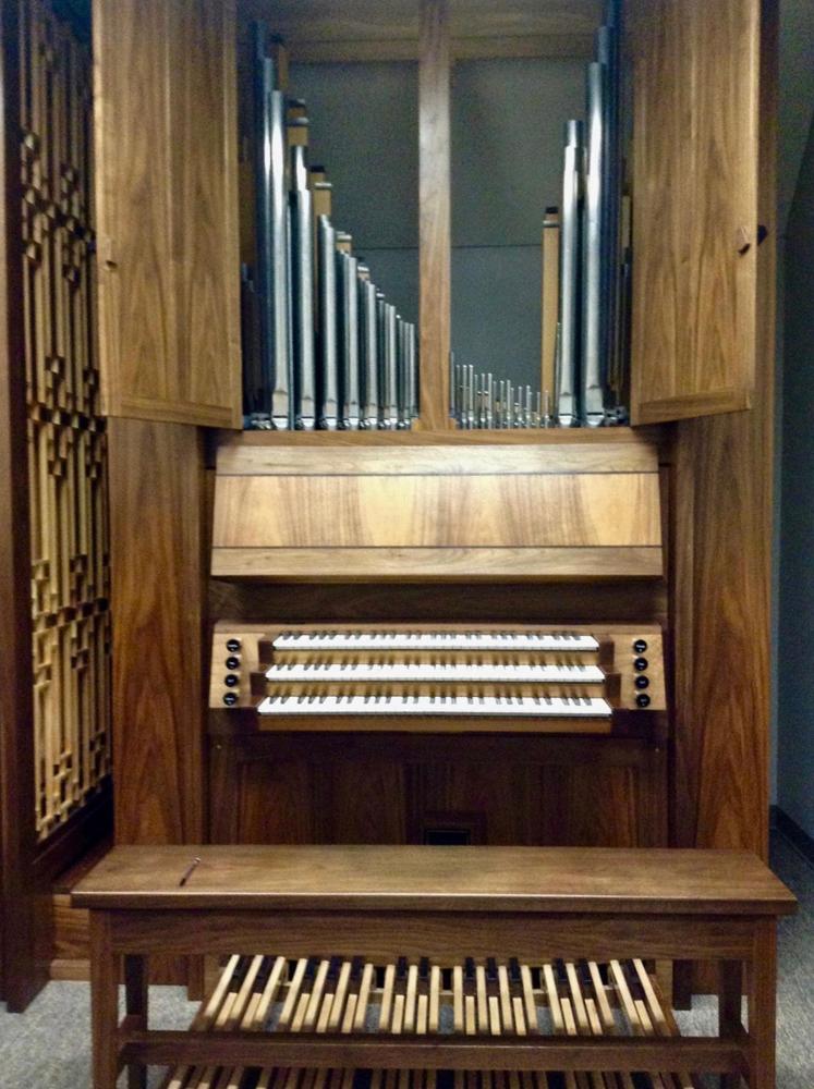 This entry describes an original installation of a new pipe organ. Identified by Kyle Arthur, based on personal knowledge of the organ. -- 4 stop mechanical practice organ