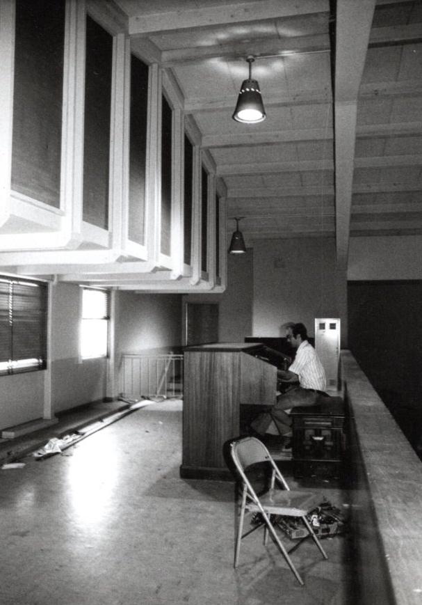 Identified through online information from Frank Sele. -- A relocated pipe organ, originally built by M.P. Möller in 1930, identified by Frank Sele.<br>For high school I attended Don Bosco Technical Institute in Rosemead, CA from 1961 to 1965. A new multipurpose auditorium/basketball court had recently been built which included Moller Opus 5670. It was installed hanging from the ceiling over a choir loft on the north end of the building. I was told that the Los Angeles Archdiocese was offered the organ due to the Badham residence being about to be demolished for a freeway. The organ was installed by the Crome organ company. Due to severe space restrictions in the hanging organ chamber the regulators were installed above the pipework. The organ bench was a beautiful piece of furniture with geometric molding designs on it yet the sides of the console were inexplicably (at the time) plain. Many years later I came across an old Architectural Digest magazine which pictured the Badham residence showing the location of the console in an alcove which explained the plain sides. A caption on a photo of the garden said that the organ also spoke outside; the junction board in the console had terminals labeled "Lawn Shades". As installed at Bosco Tech there was only room for 12 ranks. As I remember, the Great had a Diapason, Harmonic Flute, Dulciana, 2 2/3 Flute, Clarinet and Tuba; the Swell had a Principal, Flute, Salicional, Voix Celeste and Oboe; the Bourdon/Lieblich Gedect and the Chimes were located between the Great and Swell chests. Some of the stop tabs had been turned over and re-engraved; Vox Humana, Vox Angelica and Harp were no longer in the organ. During my student years I sang there in a very good choir often accompanied by the organ. I later taught at the school for a number of years and it was always fun to play the organ. The auditorium has tilt-up concrete walls ( I understand they were the largest ever attempted at the time) and the place was acoustically very live. In the mid nineties I visited the school and found the organ not there. It had been thrown away to make room for a faculty dining area.