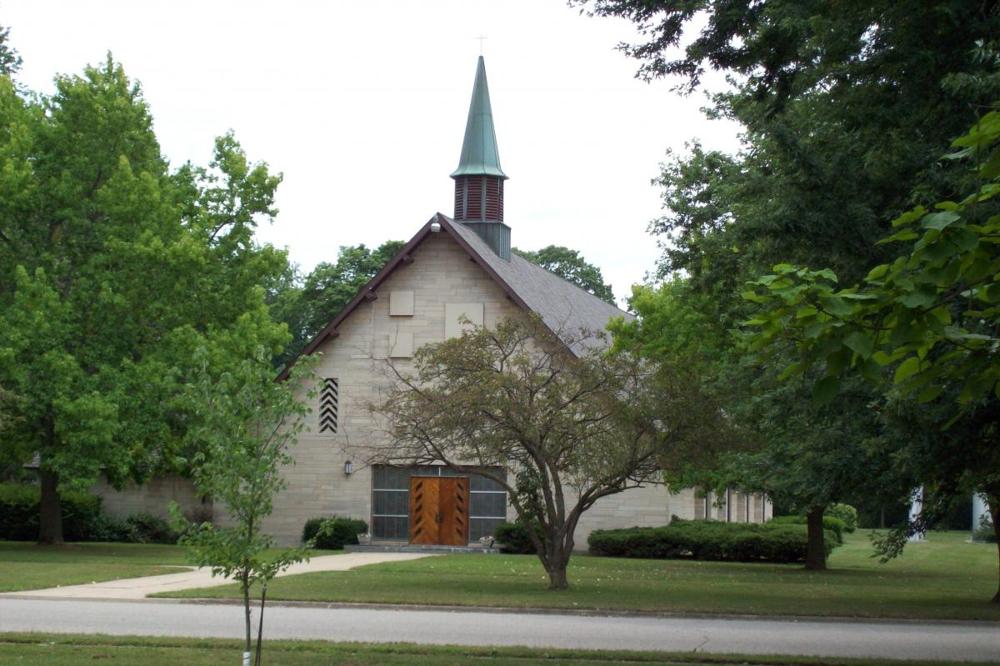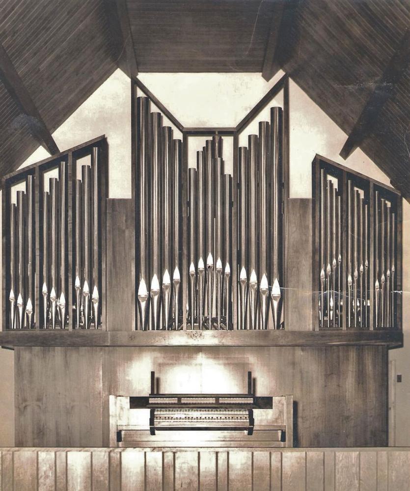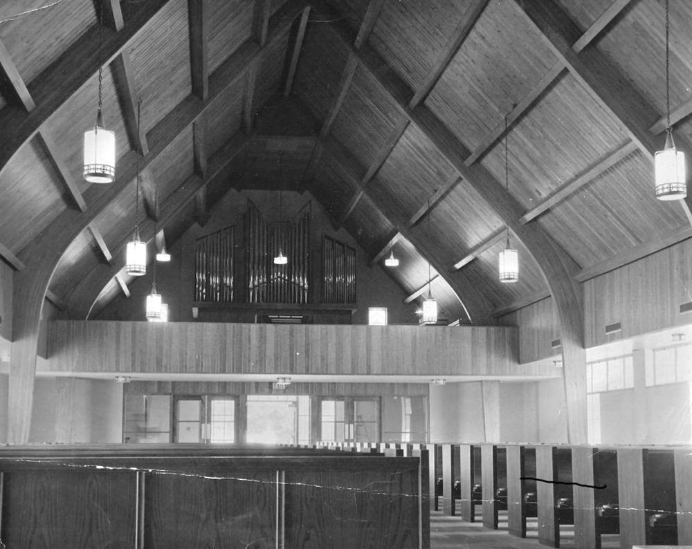 -- The chapel was built in 1961 and seats 500. Above the altar is a large wood carving of the Last Supper. The stained glass depicts the life of Christ. The organ was built by Robert Noehren and placed within a case in the rear gallery. Some pipes are exposed to form a facade. The console is detached, facing the case, and centered in the gallery. The floors are tile and there are no cushions on the oak pews, allowing the organ to speak clearly in the room.