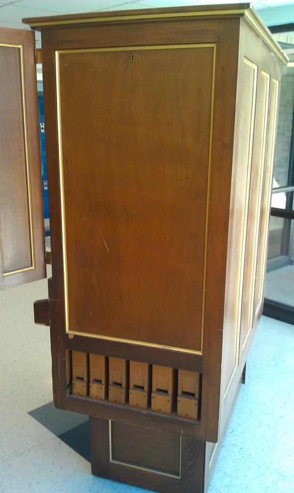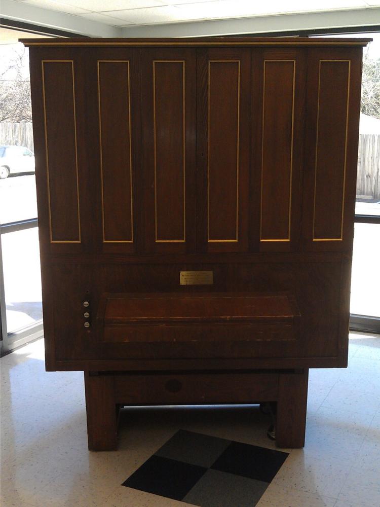 Updated through online information from Bryan Priddy. <br>At the cost of $1500, in May of 2104 the entire organ was cleaned, action was repaired and any missing pipes replaced. The work was completed by the Redman Organ Company, which has serviced the instrument since new. The organ is now available for sale to any interested parties and on site visits to evaluate the instrument are welcomed. Please schedule appointments via contact with Bryan Priddy, Artistic Director, Texas Boys Choir....bryan.priddy@fwafa.org.