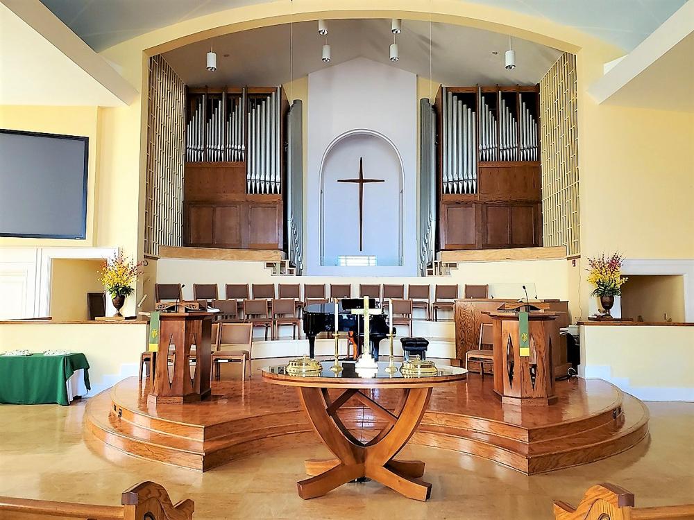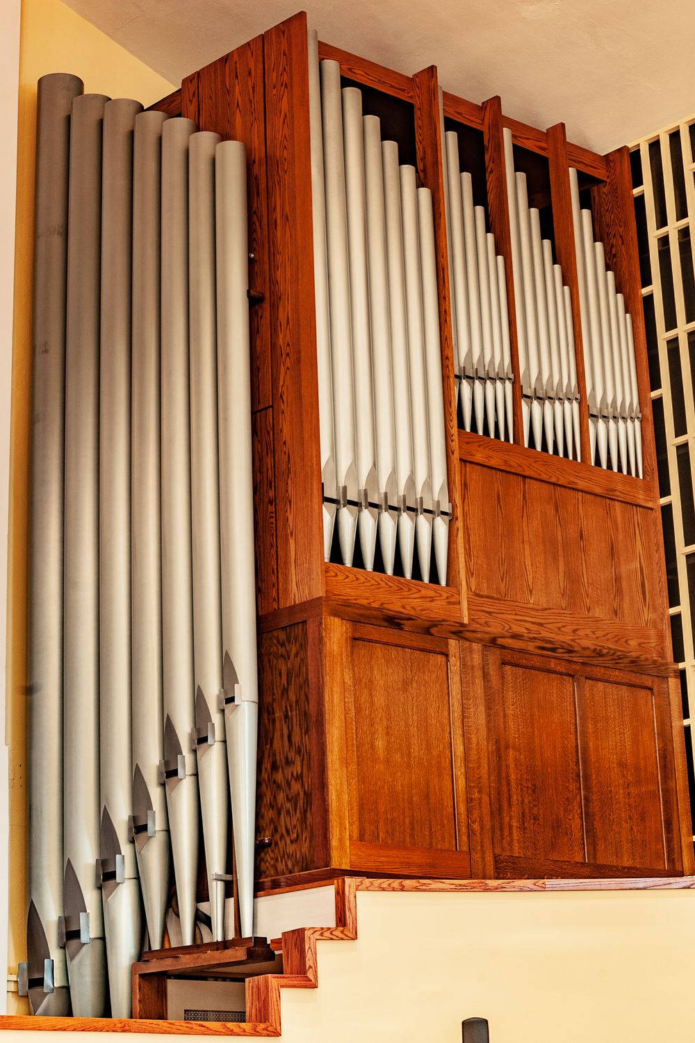 <br>Identified by William Dunklin, who has heard or played the organ.<br>The original installation included 2 free standing cases, one for the Great, one for the Swell, Pedal divided between the two. An exposed Positiv was located in the center. In this installation, the cases are again separated, though here by the opening to the church's baptistery. The former exposed Positiv forms the basis of an enlarged Choir Division located in the church's existing single organ chamber. Some Wicks ranks predating 1982 were retained for the Choir division. The Casavant console was retained and rebuilt using digital switching and combination action.