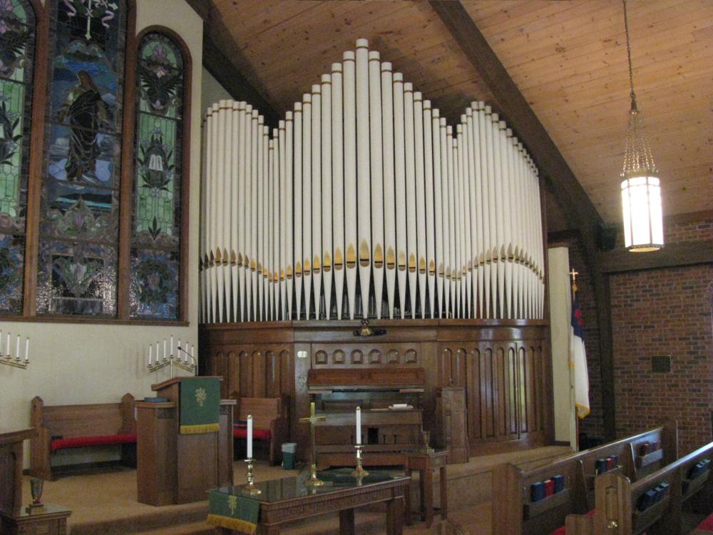 Updated through online information from David Lewis. -- According to the church, the organ arrived on October 4, 1904, and was installed in the previous building 1904-05. Originally hand-pumped, later replaced by a water motor and finally an electric blower, both left behind when the 1887 building was razed in 1978. The organ was refurbished in the 1930's and 1950's when cracks developed in the chests. Chas. McManis conducted additional restoration 1978-79 when the organ was moved.