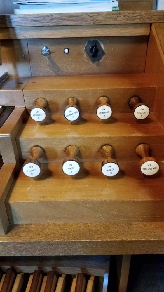 2 Manuals (56 Notes)32 Note Pedal3 Divisions15 Stops15 RegistersMechanical (Balanced Tracker) Key ActionMechanical Stop Action✓ Hitchdown Coupler(s)